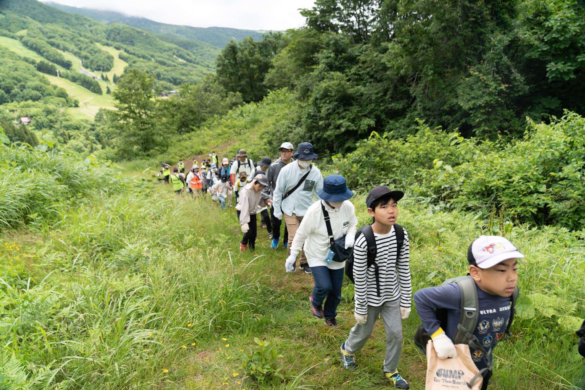髙梨沙羅と一緒にみんなで元気よく、夏のスキー場をトレッキングに出発し、